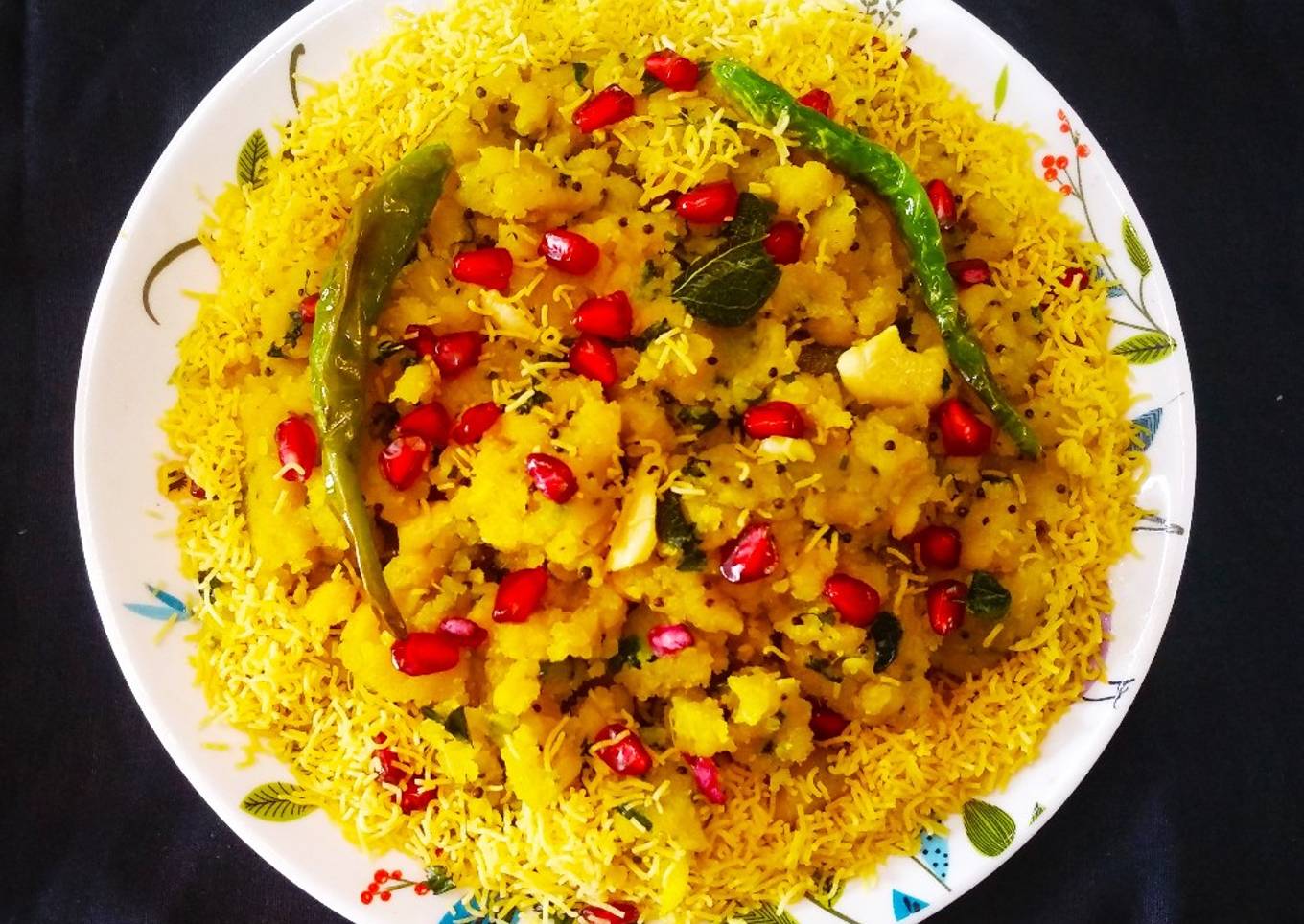 - Garnish with nylon sev fried chilli and pomogranate seeds. YUMMY TASTY MADHI AMIRI KHAMNI IS READY TO SERVE.