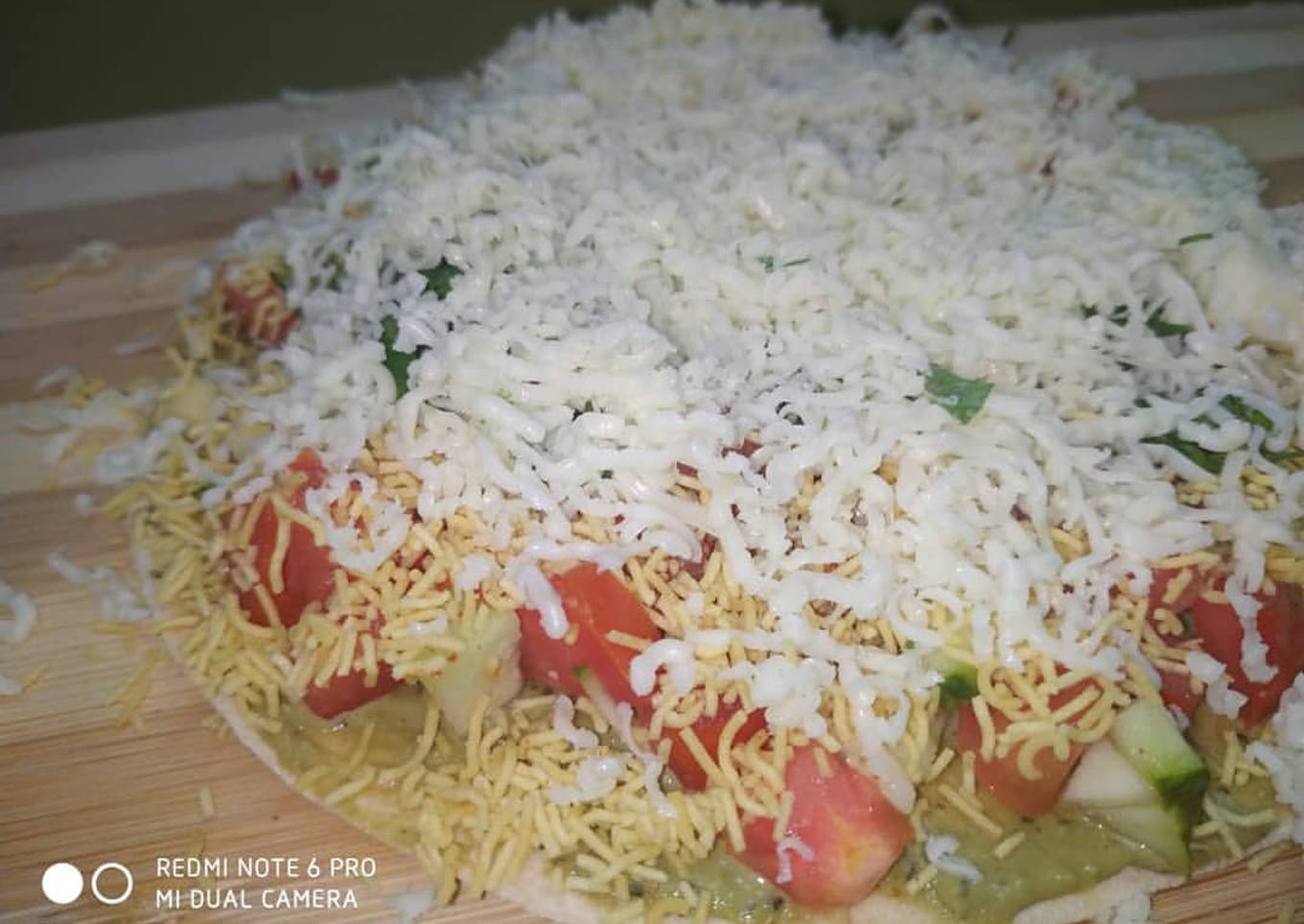 - Then top it with coriander, sev and lot of chesse