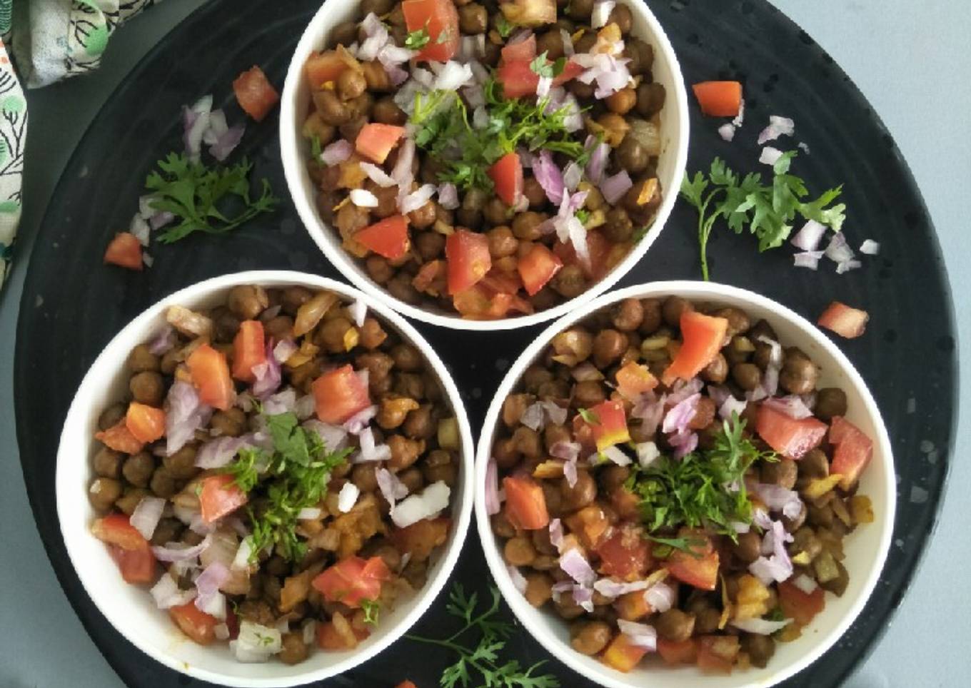 - Sprinkle chopped coriander leaves on top and serve this Mumbai style Chana Chaat for a nutritious evening snack or as a salad for a light dinner along with a healthy soup!