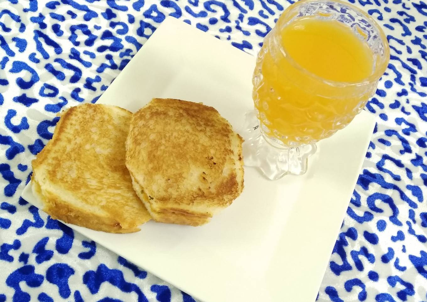 - Heat butter on tawa and place 1 set of sandwich. Toast it golden brown from both sides.